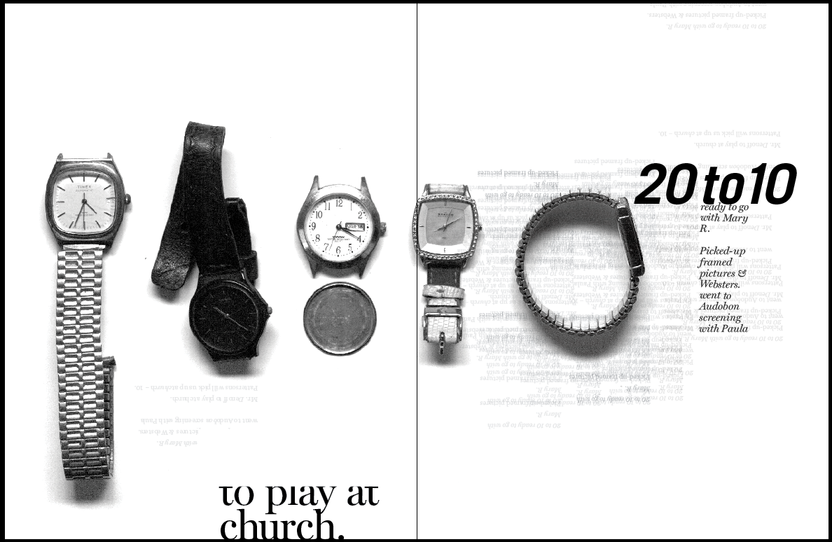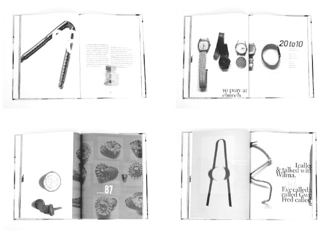 Found obsolete objects. Pictures taken with library book scanner. Text from found calendar. Monograph entitled Townie about the city of San Marcos.