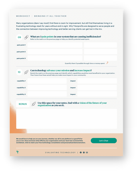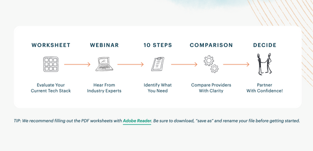 Fillable PDF workbook plus webinar rolled into one content kit focusing on evaluating your technology. Rebranded version below.